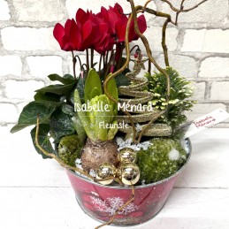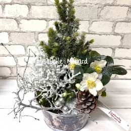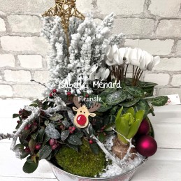petit jardin de plantes raffinées, et son décor de fêtes. Le décor, le contenant et les plantes peuvent varier suivant la disponibilité le jour de la livraison.