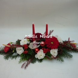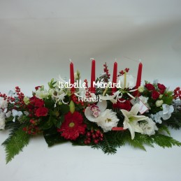 traditionnelle couronne de l'Avent en sapin frais, décor de fêtes et ses 4 bougies.