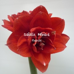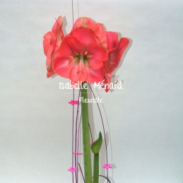 Amaryllis en composition de fleurs coupées piquées dans la mousse hydrophile, dans contenant décoratif. Le stade de floraison variera suivant arrivage, en fonction du jour de livraison demandé.