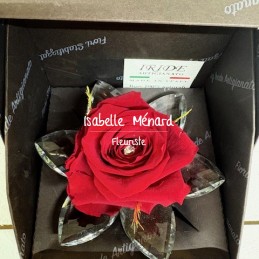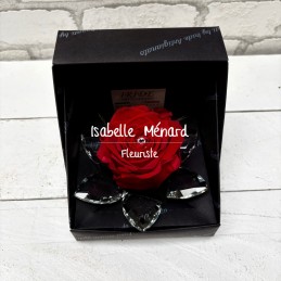 belle rose rouge dans un écrin noir, pétales en cristal, à profiter de nombreuses années